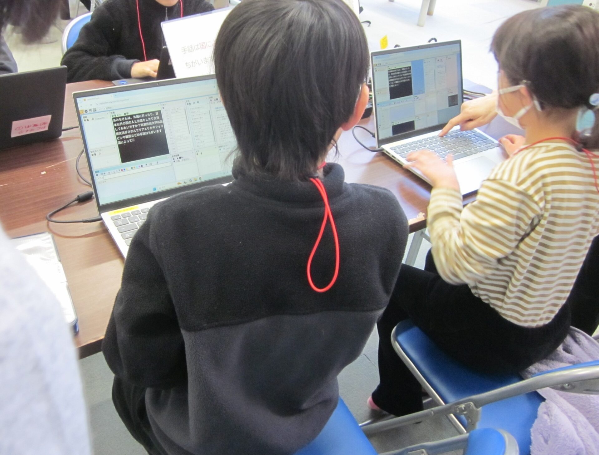- 連係入力体験では、日頃学校生活の中で利用しているパソコンノートテイクについて、「読む側」ではなく「入力する側」の立場を体験しました。普段利用している文字情報がどのようにして表示されているかを知る体験は新鮮だったようで、支援の仕組みや支援員さんの日頃の活動に目を向けるきっかけになりました。(担当:中島亜紀子)